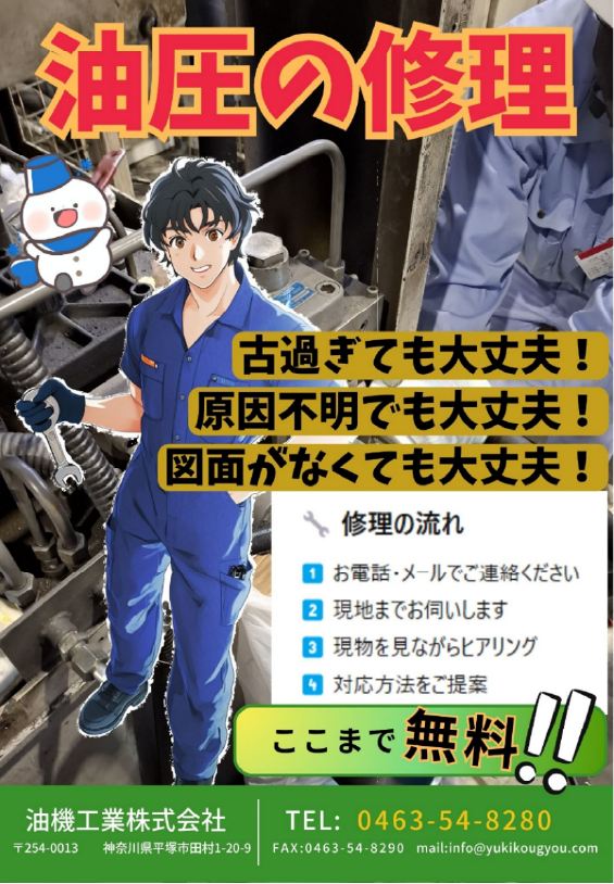 予防保全の考え方で部品1個の交換、作動油のみの交換にも対応します。